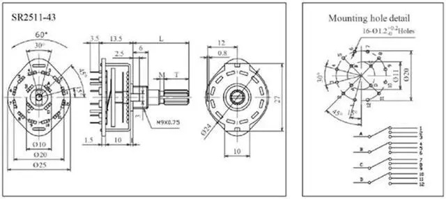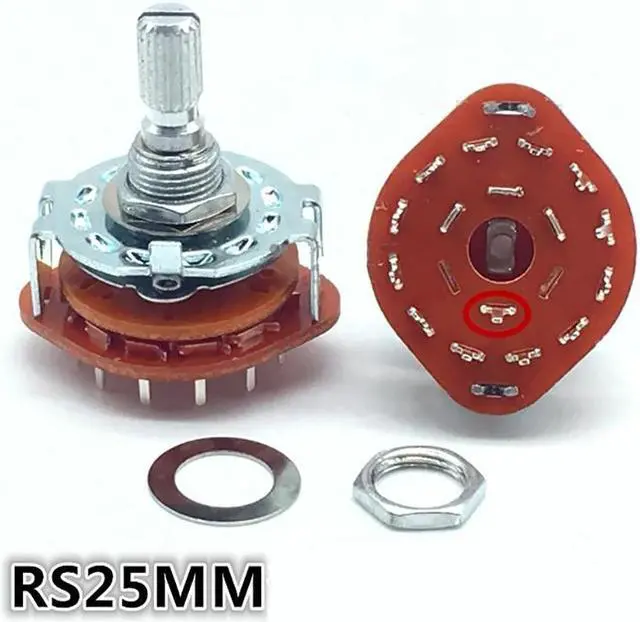 1 Pole 12 Position RS25 Rotary Band Switch Multiplex Selector 20MM Flower Axis DC30V 0.3A Switch