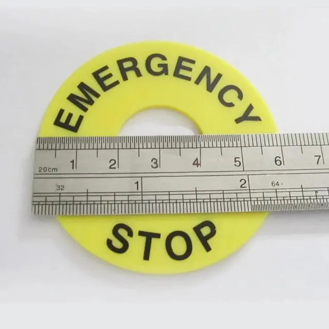 5pcs/lot ABS Emergency Stop Button Switch Alarm Ring Yellow Sign Button Box Warning STOP Outer Dia 60mm Opening 22mm