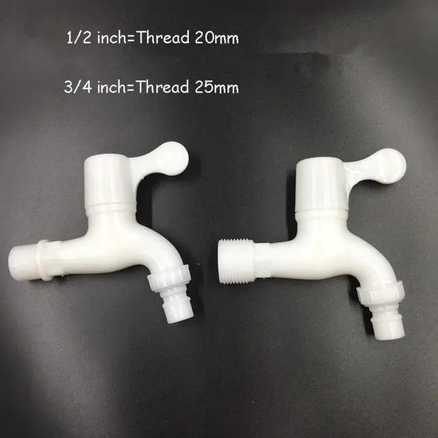 1/2 or 3/4 Inch PVC Bibcocks Wall-mounted White Fast on Tap Washing Machine Outdoor Garden Small Faucet Home Replacement