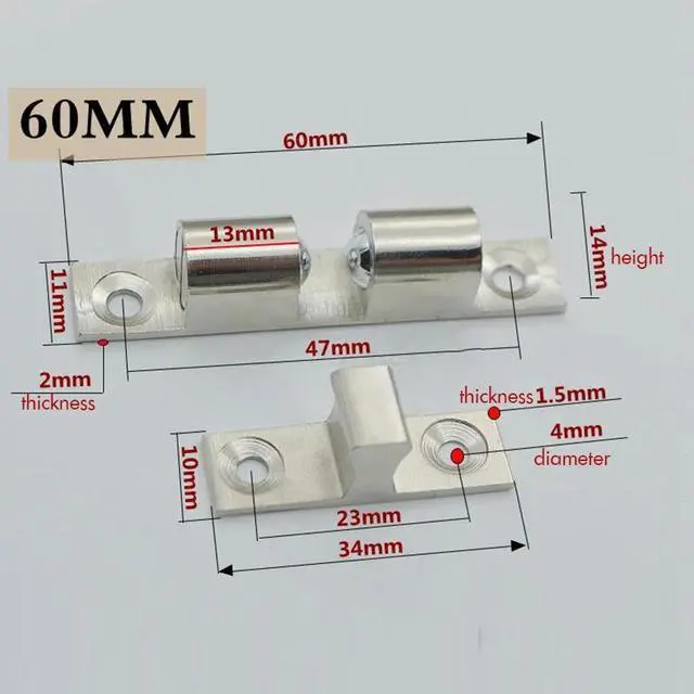 60mm Length Pure Copper Double Spring Steel Ball Catch Latch For Furniture Cupboard Cabinet Door Adjustable Closet Tension Latch