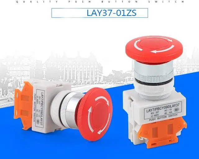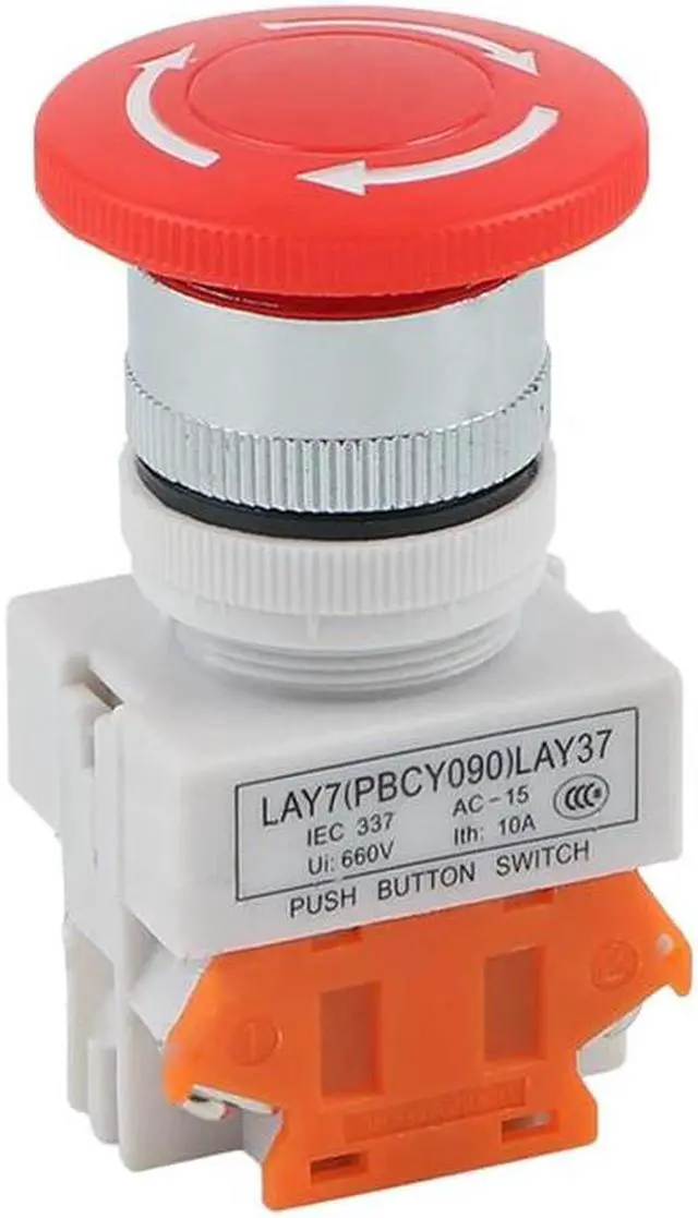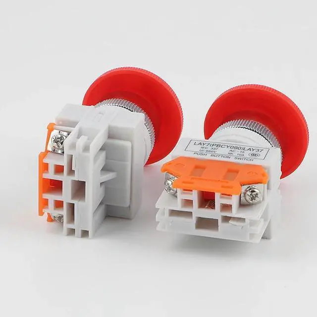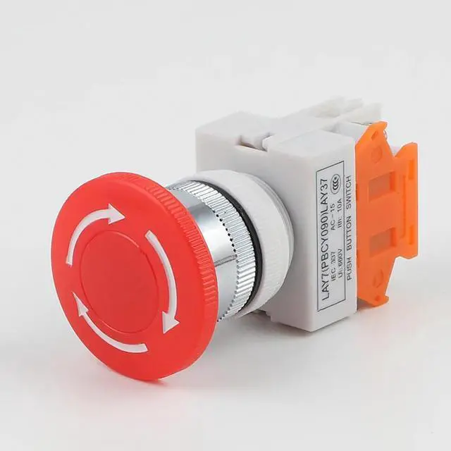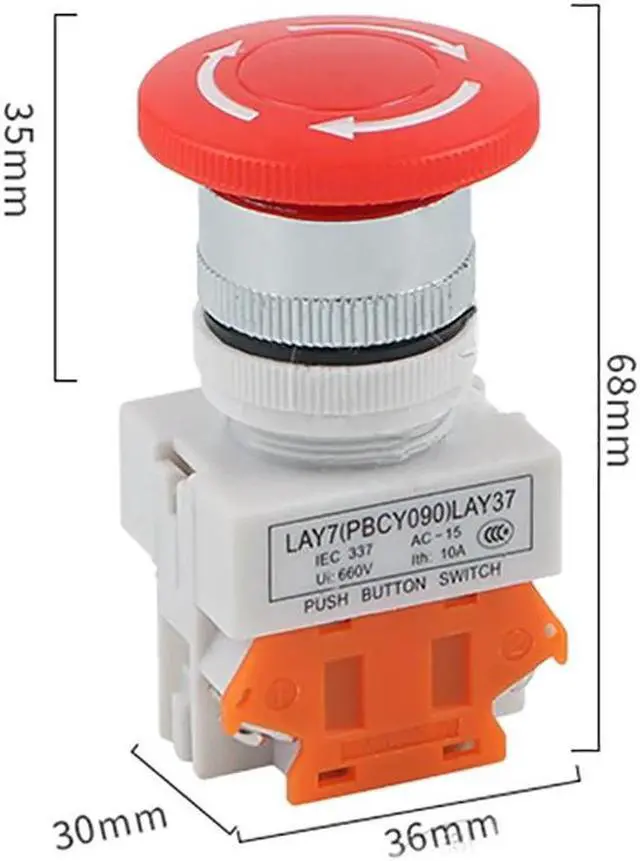 1pc 22mm Emergency Stop Latching Push Button Switch 10A Mushroom Cap 1 Normally Closed 1 Normally Open Push Button