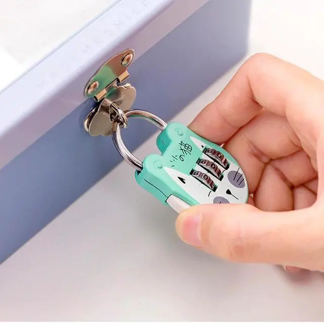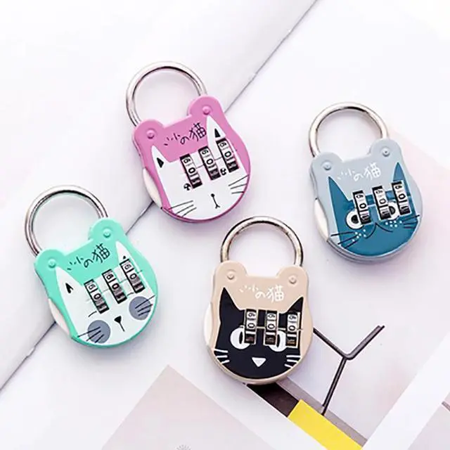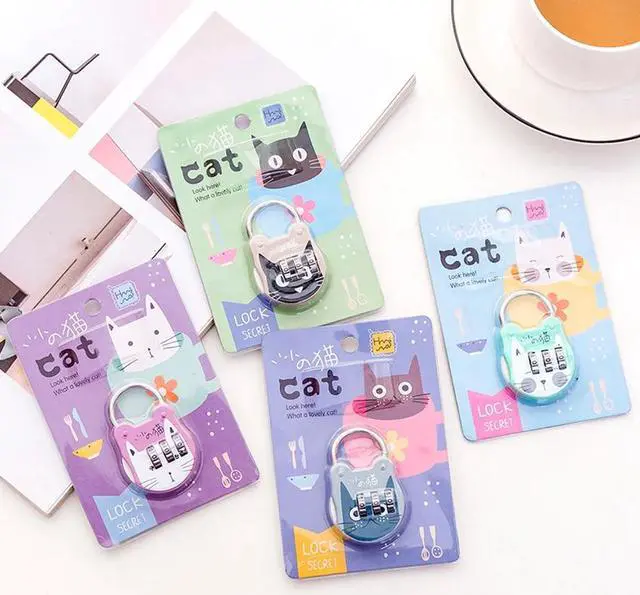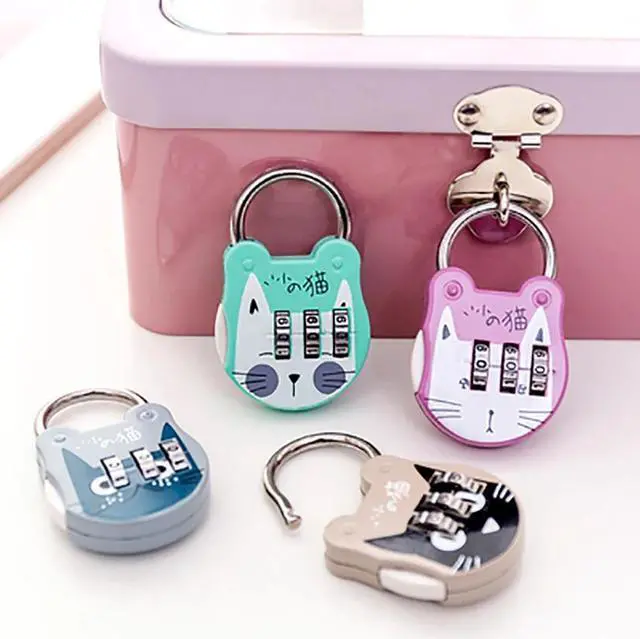 1pc Cute Cat Luggage Padlock Suitcase Backpack Password Lock Cartoon Mini Keyed Padlock Journal Notebook Handbag Code Locks