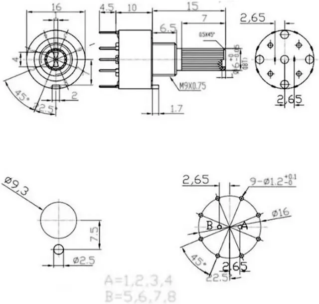 2 Pole 3/4 Position SR16 16mm Plastic Rotary Band Switch DC60V 0.3A 15MM Flower Axis Round Switch(each position:45 degree)