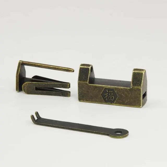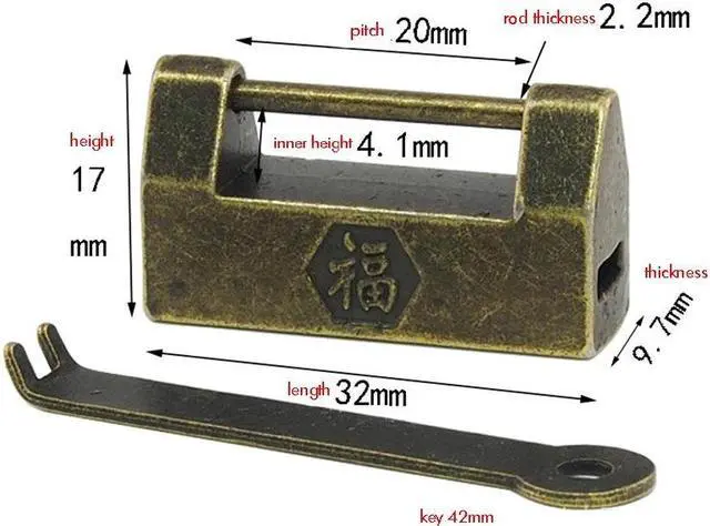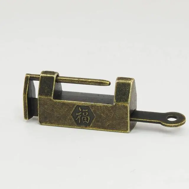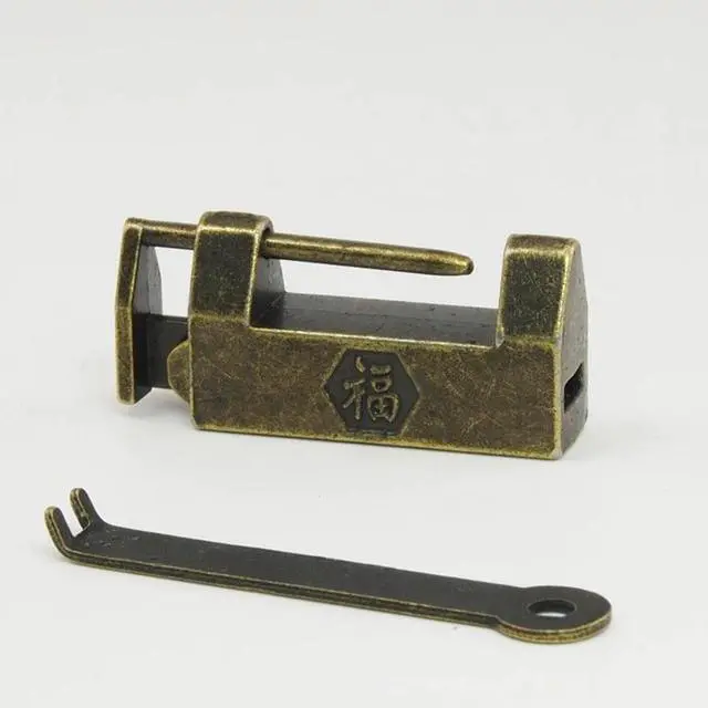 32mm Mini Antique Vintage "FU" Chinese Character Lock with Key Padlocks Decorative Locks for Cabinet Jewelry Wooden Box