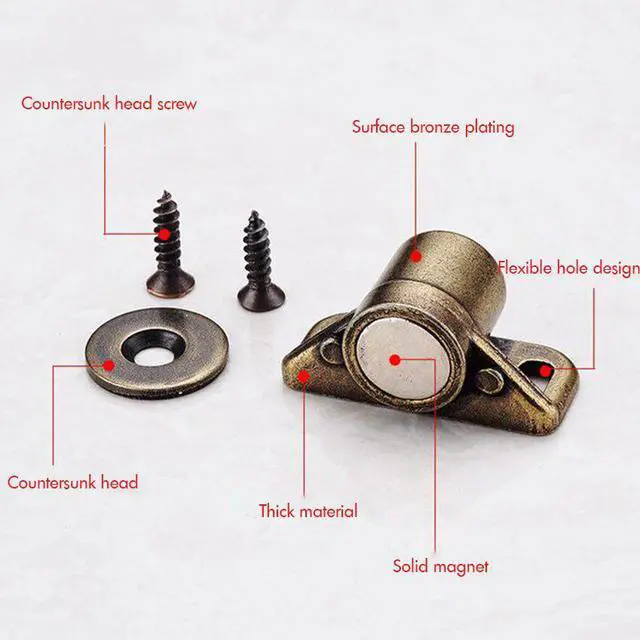 Antique Copper Magnetic Latch Catches, Cabinet & Furniture Snap-on Ball Spring Beads for Cupboard, Drawers, Closet with Screws
