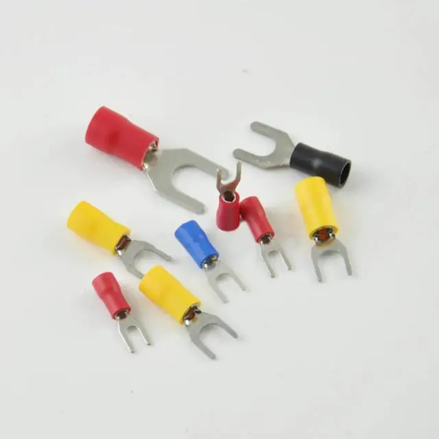 100PCS/ Lot SV 1.25 -3 Fork Shape pre-insulated Splice Terminals UT Insulated Spade Terminal Block TU-JTK Wire Connector Cap