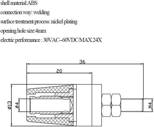 M4*36 4mm 24A nickel plating terminal connector, banana type amplifier terminal connector for speaker jack connector