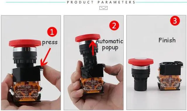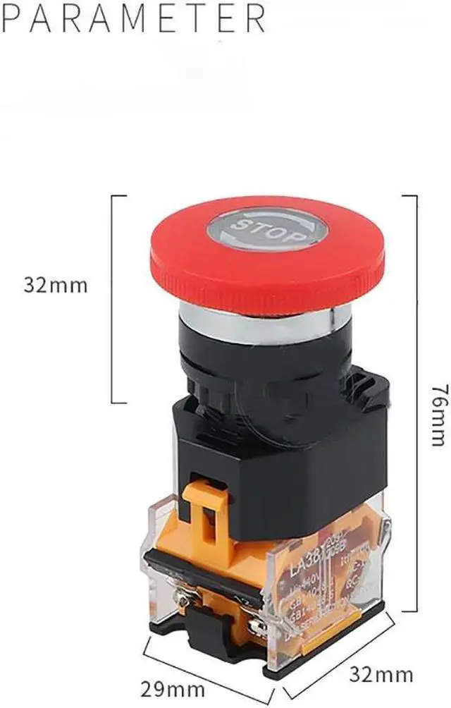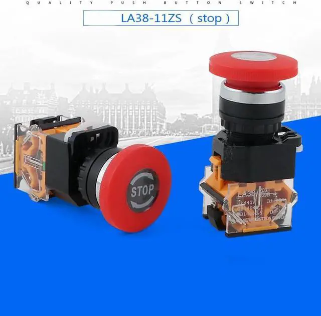 1PC LA38-11ZS (STOP) Mushroom Head Emergency Stop Button Switch 22mm Power Push Button Switch 1 Open 1 Close