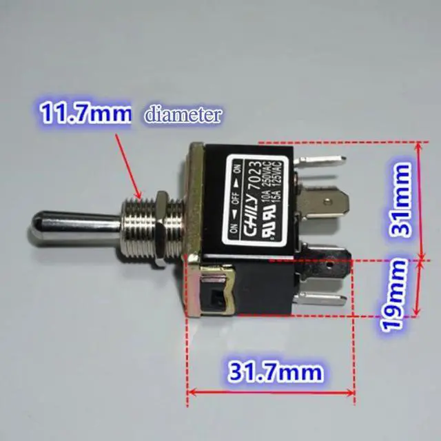 • Mini toggle switch ON black rocker switch 3 position 6 pins lever switch 6.3mm Long Flat handle 10A250VAC/15A125VAC