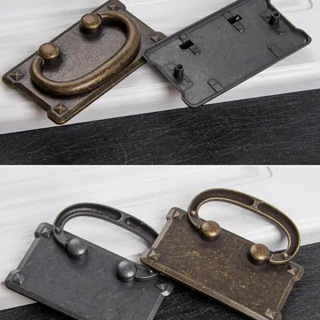 Antique Square Wardrobe Door Small Handle American Style Knobs And Pull For Cabinet Retro Handle Rectangle Cabinet Pull Ring