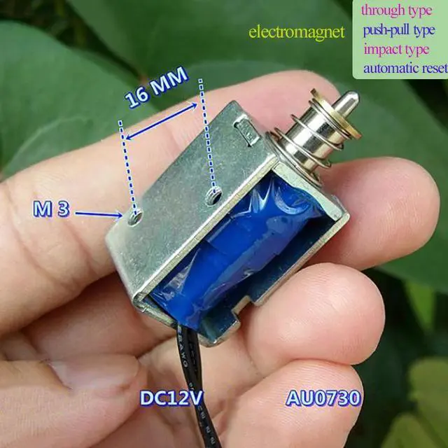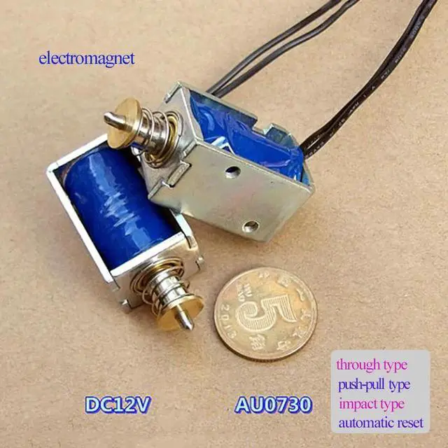 DC12V AU0730 Mini Through-type Impact Type Push-pull Frame type Automatic Reset Electromagnet