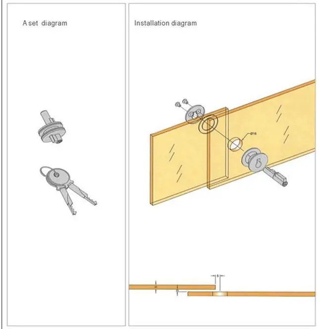1pcs Glass door lock Sliding Glass Cabinet Lock Safety Anti-theft Showcase Display Cabinet Locks Silver Hole diameter 16mm