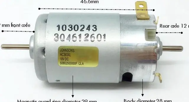 Dual Shaft 390 Carbon Brush Motor DC 12-18V 7430 rpm-11250 rpm, Mini Micro Motor with Three Pole Inner Rotor
