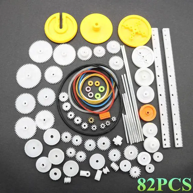 82PCS/Set Plastic Gear Package Kit DIY Gear Assortment Accessories Set for Toy Motor Car Robot Various Gear Axle Belt Bushings