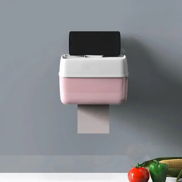 1pcs Punch-free Toilet Paper Holder Wall Mounted Plastic Bathroom Waterproof Paper Phone Storage Box for Home Kitchen Organizer