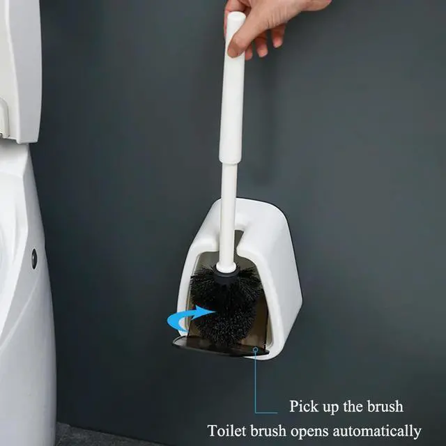 PP+PS Wall Mounted Toilet Brush Holders Automatic Opening And Closing Cleaning Toilet Brush For Bathroom Toilet Cleaning Brush