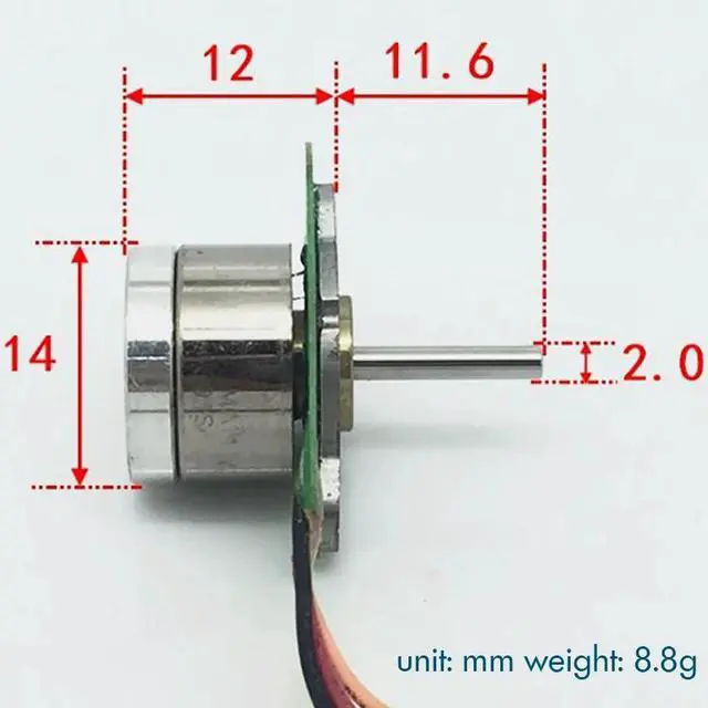 Three-phase 4-wire Brushless Motor Precision Micro DC Motor Outer Diameter 14mm Outer Rotor Shaft Dia 2mm, Wire Length 60mm