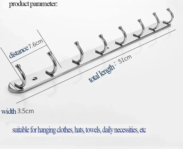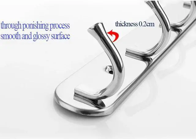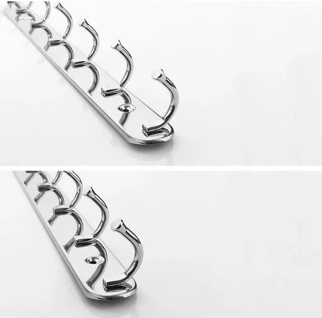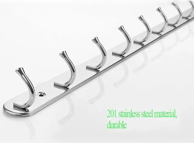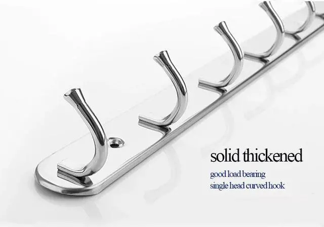 Stainless Steel Single Head Curved Kitchen Bathroom Hook, Wall Mounted 8 Hooks Style Hat Clothes Rack Holder For Coats, Towels