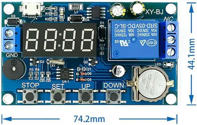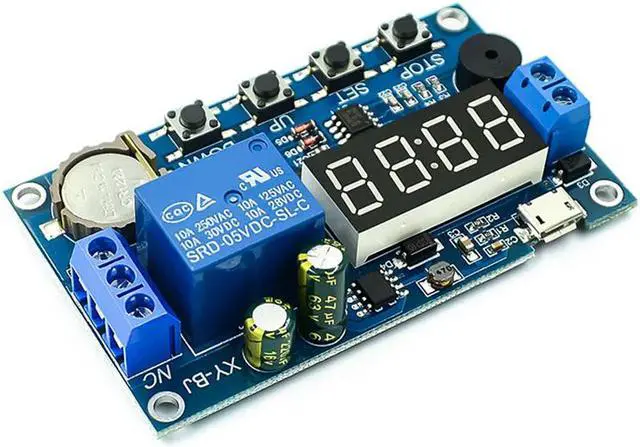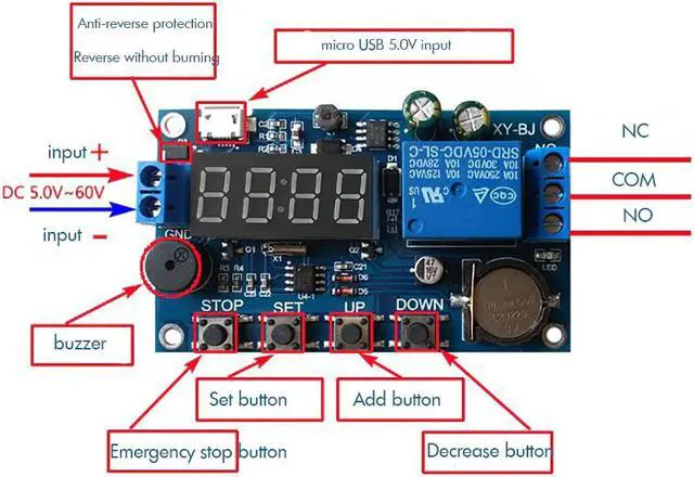 5.0V-60V Timer Relay Delay Module Digital Timer Relay On-Off Controller with Buzzer Alarm, 24H Timing, 5 Time Periods Adjustable