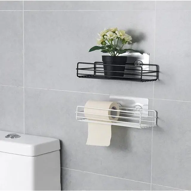 Bathroom Iron Storage Rack Shampoo Shower Gel Holder Kitchen Sundries Organizer Multi-functional Drain Shelf Punch-free