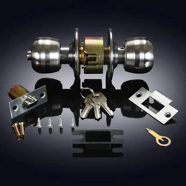 Ball Privacy Passage Door Knob, Stainless Steel Entry Door Knob with Lock, 3 Keys Door Knob Lock, Center Distance 60mm/ 70mm