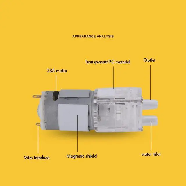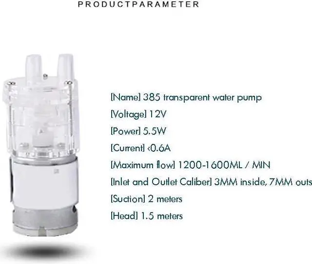 Long Life Type Diaphragm Pump DC 12V 1200-1600ml / min High Temperature Resistant Clear 385 Motor Pump Small Micro Water Pump