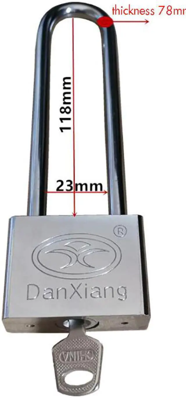 Stainless Steel Long Shackle Keyed Padlock with 3 Keys 50mm Width body, 118mm Shackle Safety Lock for Door Cabinet Drawer Shops
