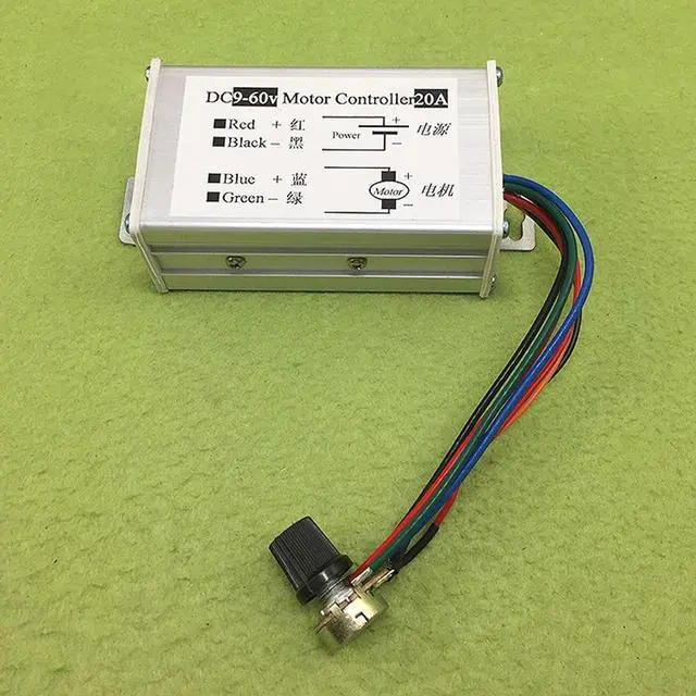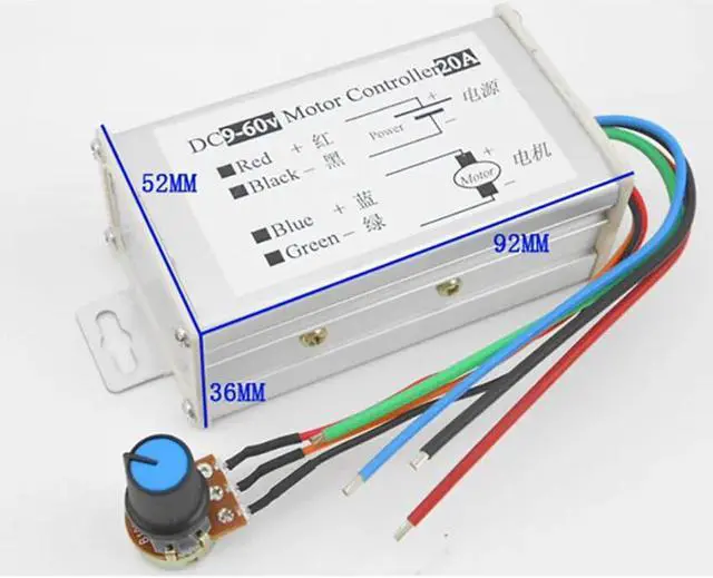 PWM DC Motor Stepless Governor Input 9V 12V 24V 48V 60V Pulse Width Motor Speed Regulator 1200W 25KHZ Controller Output 0-20A