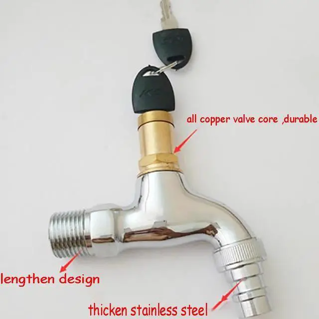 Copper Valve Core Bibcocks Outdoor Water Tap With Lock Basin Washing Machine Garden Stainless Steel Safety Faucet Hardware