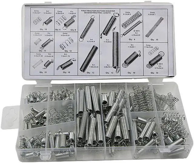 200 PCS/Lot Tool Springs Kit with Transparent Plastic Storage Box Compression and Extension Springs for Shops and Home Repairs