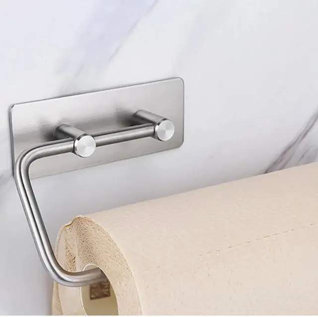 1PC Non-slip Stainless Steel Tissue Holder Free Punch Wall Mounted Hanging Roll Paper Towel Rack Bracket For Kitchen Bathroom