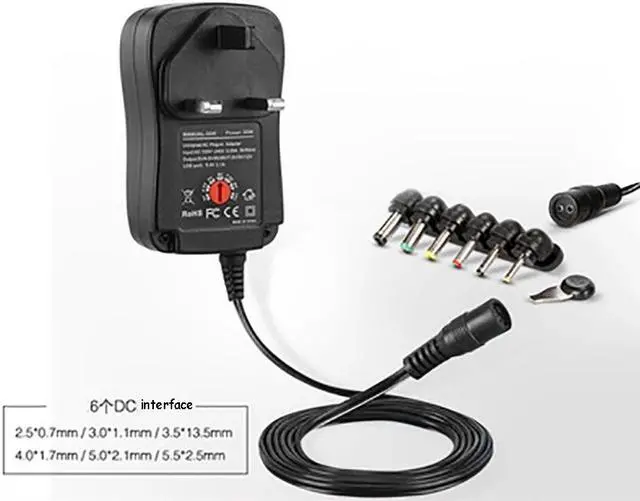 30W LED Drive Power Supply Adapter AC100-240V to DC3V-12V EU/USA/AU/UK Plug 6 DC Connector 5V 2.1A USB Port Switch Power Supply