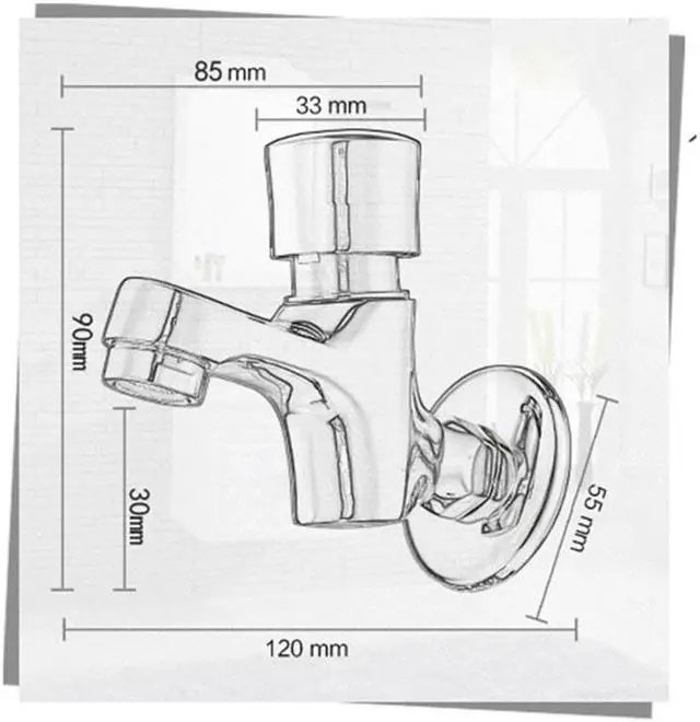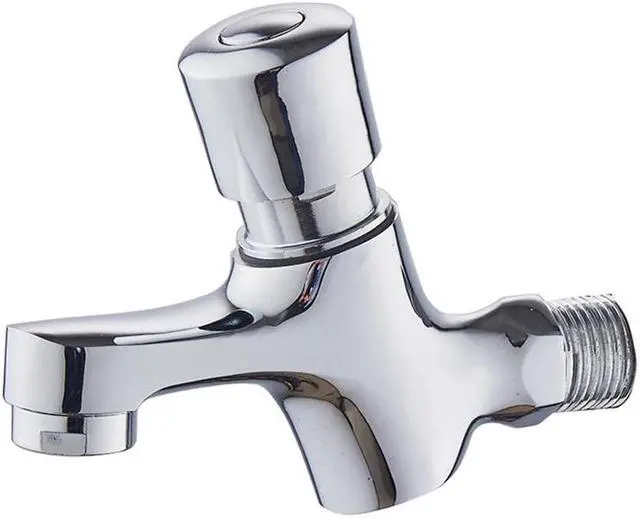Wall-mounted Delay Faucet Copper Chrome Plated Single Cold Basin Faucet Push Button Basin Tap