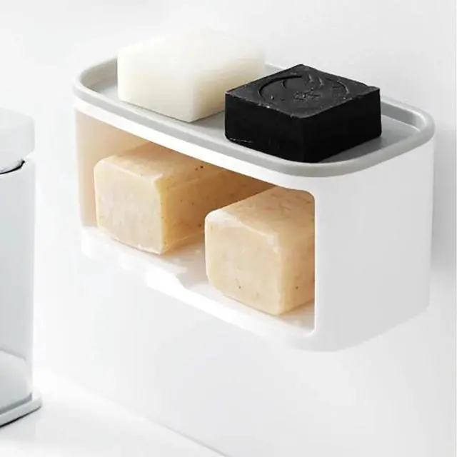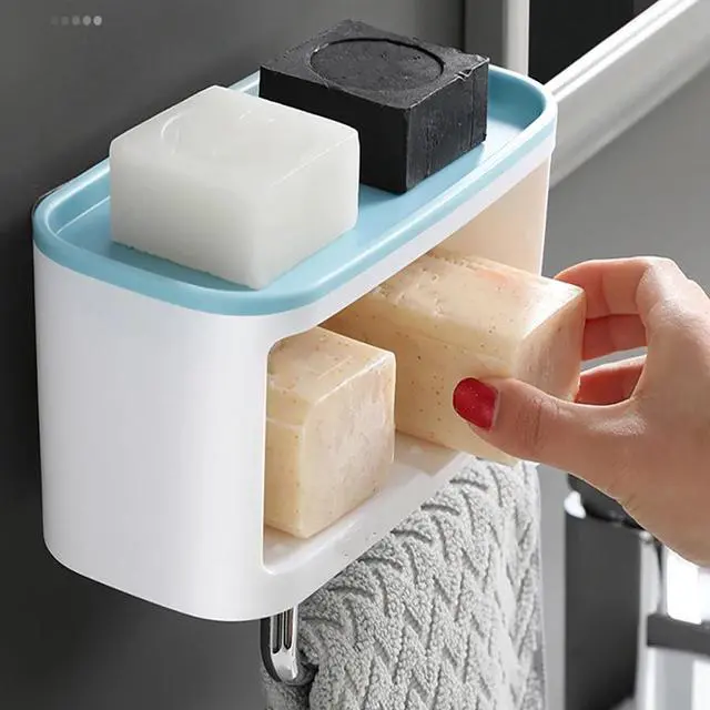 Wall-mounted Toilet Paper Holder Plastic soap holder Storage Rack Punch-free Roll Paper Holder Soap Rack With rag rod 3 colors