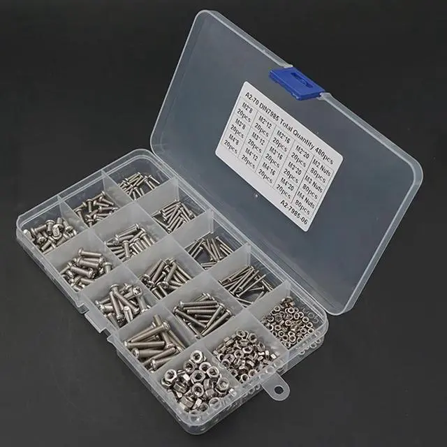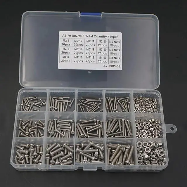 480PCS/Set M2 M3 M4 Stainless Steel 304 Phillips Head Machine Screw with Nut Combination Set Electronic Small Screws with Box