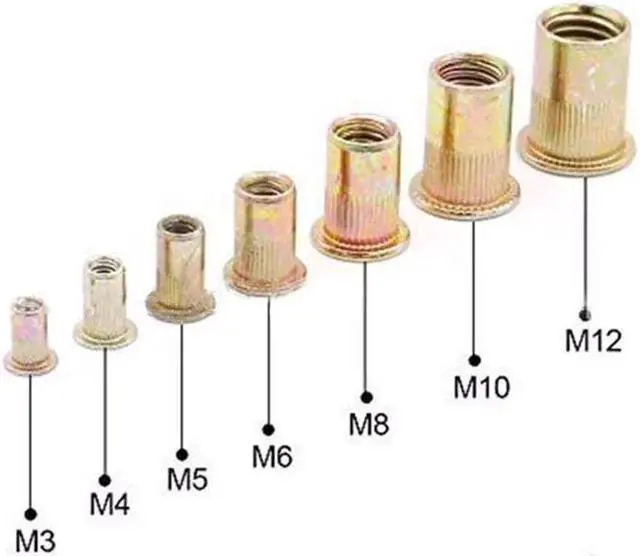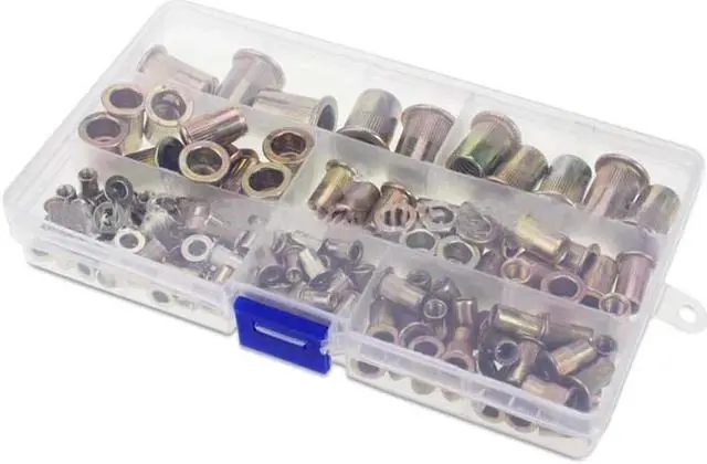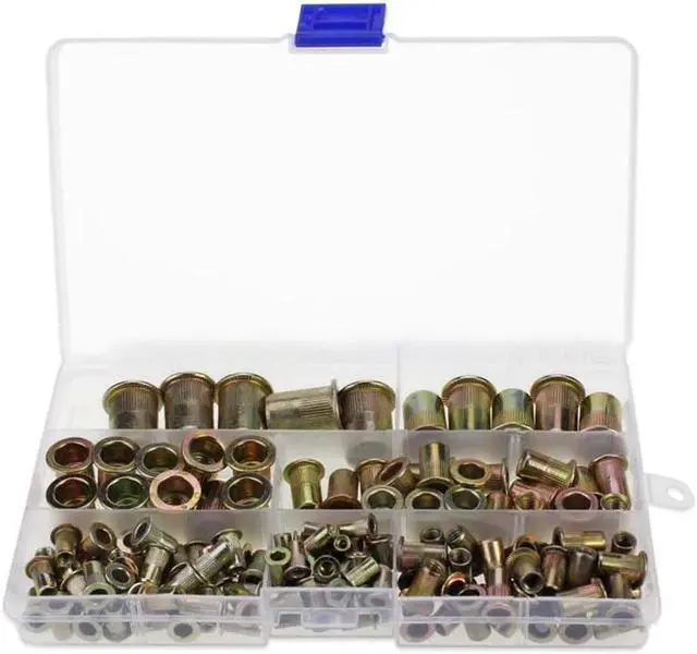 150PCS/Set M3 M4 M5 M6 M8 M10 M12 Color Zinc Flat Head Rivet Nut Threaded Insert Rivet Nuts Assortment Set with Storage Box