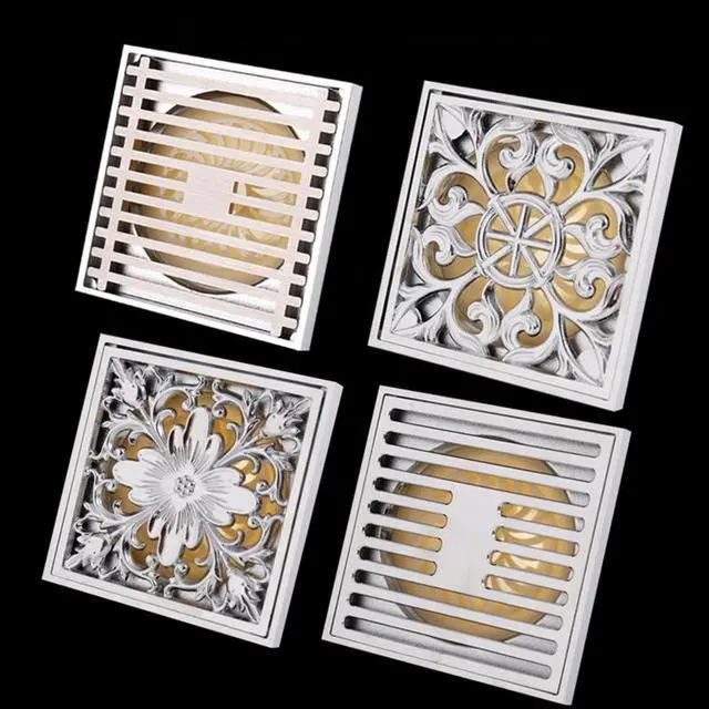 10*10cm Vintage Artistic Brass Chrome Bathroom Square Shower Floor Drain Trap Waste Grate With Hair Strainer Anti Smelly drains