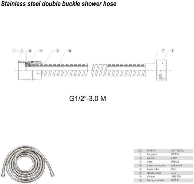 3m Flexible Shower Hose Bathroom 304 Stainless Steel Shower Pipe Spring Tube Bathroom Accessories