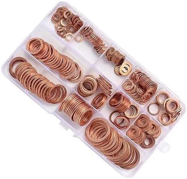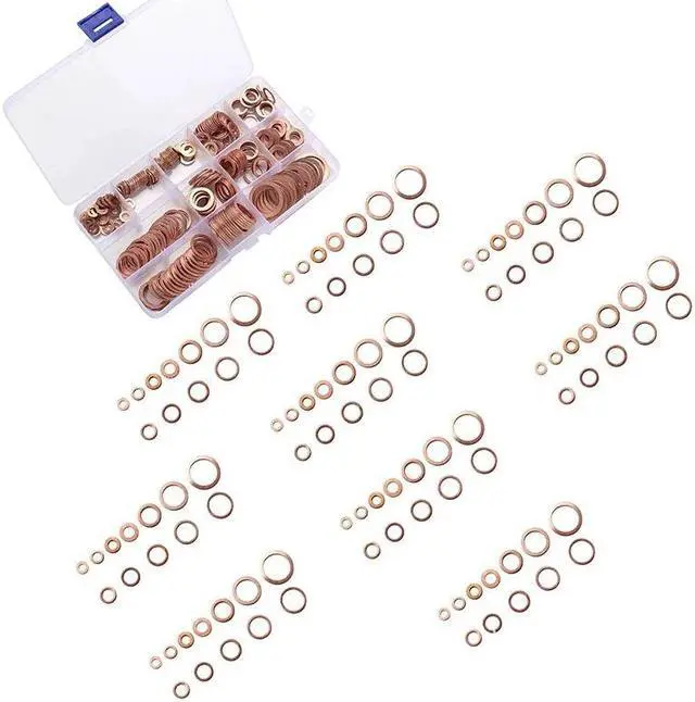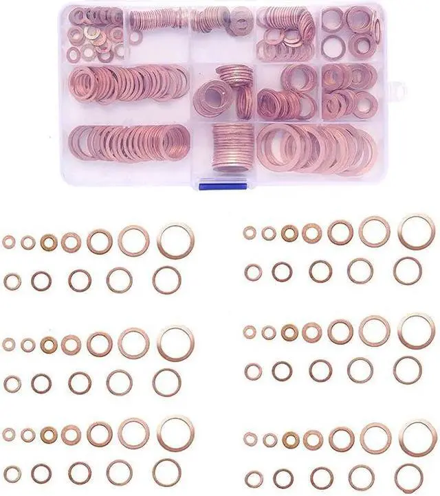 280PCS/Set 12 Sizes Copper Metric Sealing Washers Flat Washers Assortment Kit Sealing Washers Kit Oil Seal Ring with Storage Box