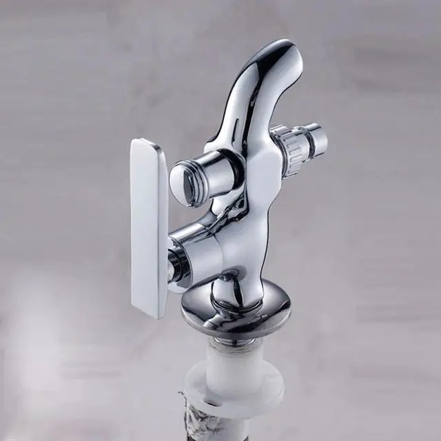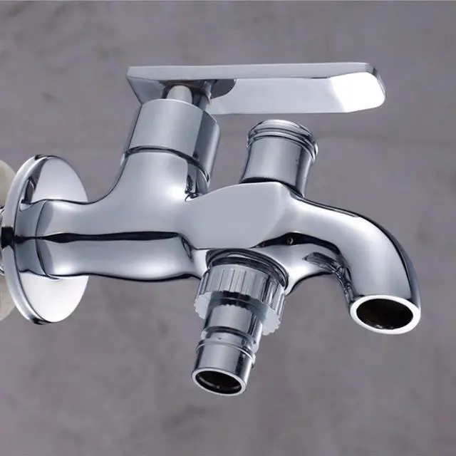 Brass Wall Mounted Double Outlet Outdoor Garden Faucet Bathroom Faucets Wall Mounted Water Faucet Washing Machine Tap