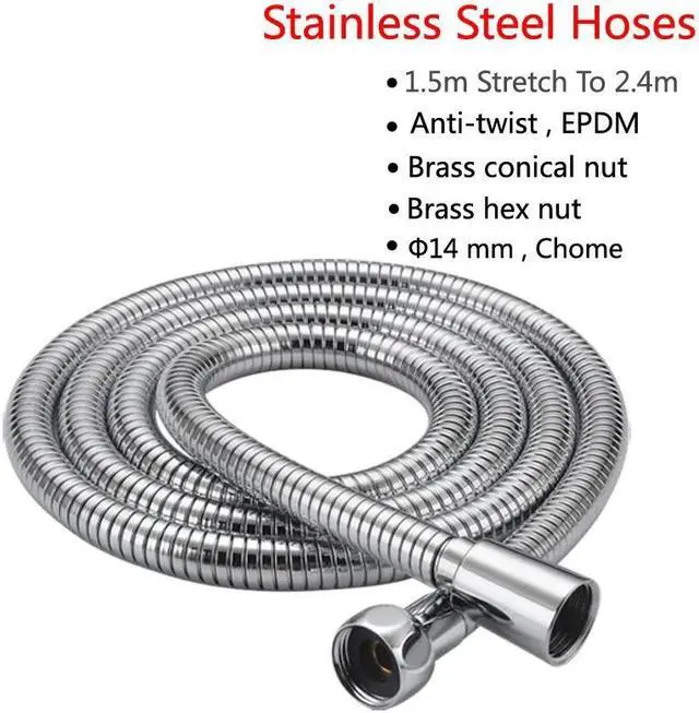 High Pressure Shower Hose 150cm 304 Stainless Steel Shower Tube Flexible Silver Bathroom Hose Plumbing
