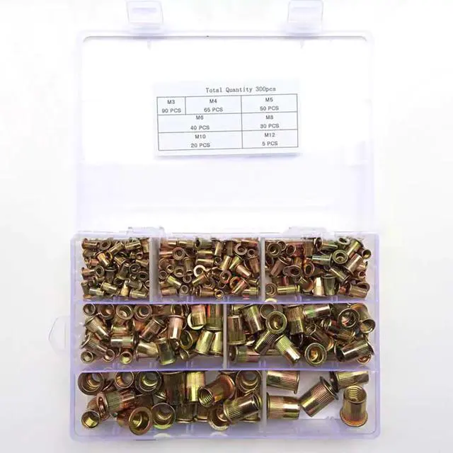 300PCS/Set M3 M4 M5 M6 M8 M10 M12 Rivet Nuts - Zinc Plated Rivetnut Flat Head Threaded Metric Rivet Nut Inserts Assortment Set