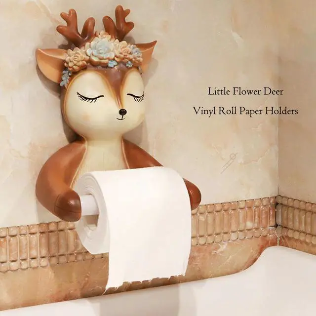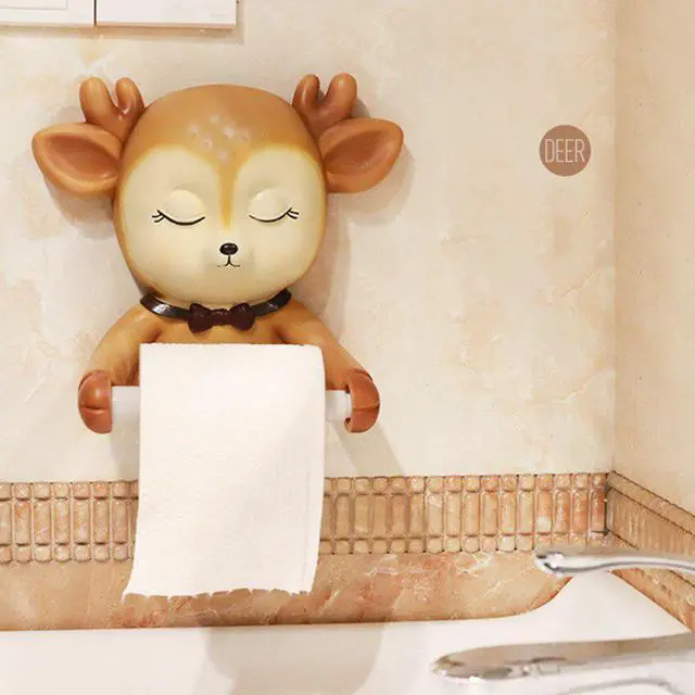 Cute Cartoon Deer Toilet Paper Holders Creative Animal Wall Mounted Hanging Roll Paper Shelf Bathroom Tissue Box Storage Rack