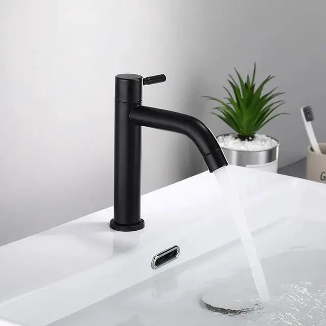 304 Stainless Steel Basin Faucets Matt Black Bathroom Sink Washbasin Tap Single Cold Water Mixer Tap