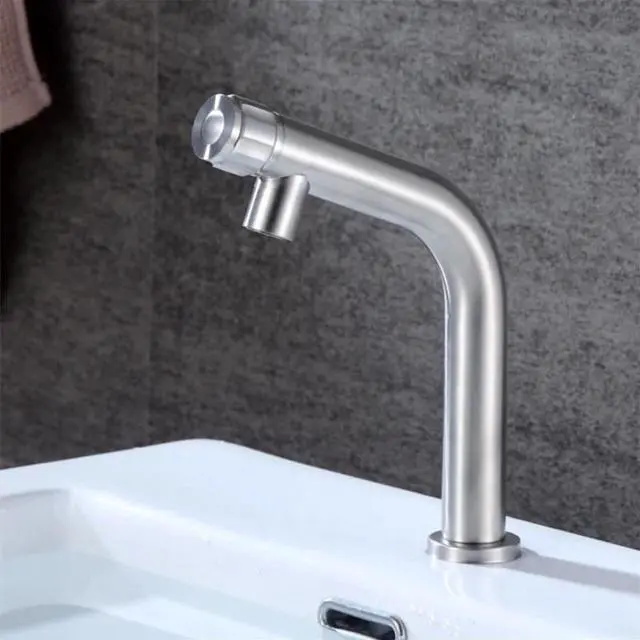 DONYUMMYJO 304 Stainless Steel Basin Single Cold Faucet Bathroom Wash Basin Sink Tap With 1 Hose