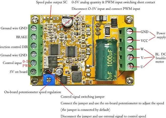High Power 380W Three-phase Brushless Motor Controller Without Hall, PWM Motor ESC Drive Board PLC, DC 6.5 -50V Controller Module
