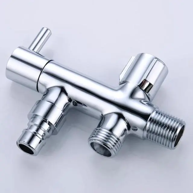 3-Way Angle Stop Valve Shut Off Quarter Turn Water Bathroom Kitchen Shower Washing Machine Plumbing G1/2 Copper Chrome Plating