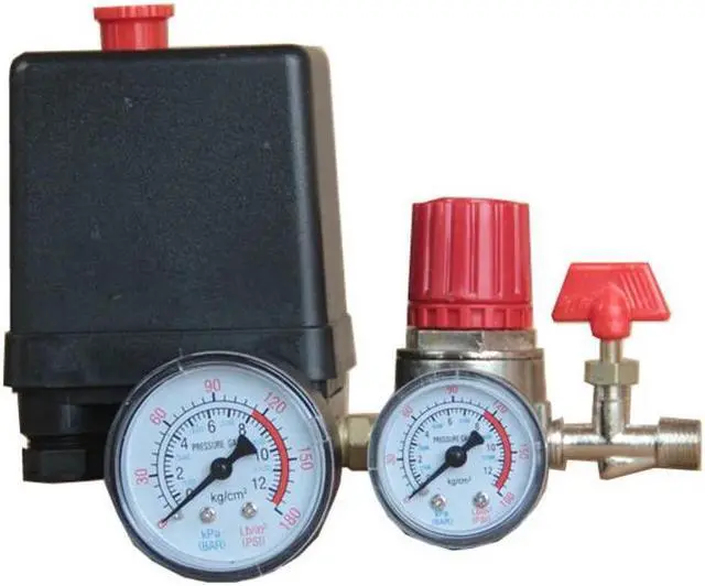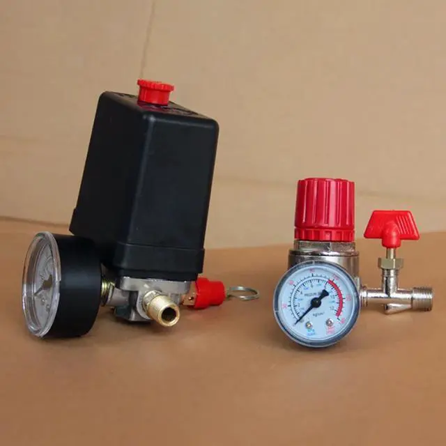 Small Air Compressor Switch With Pressure Regulator 90-120PSI 220V 16A 4 Hole Air Pump Switch Control Valve Max 0.8M(Pa)
