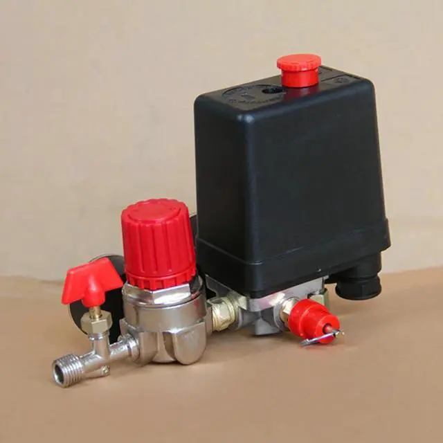 Small Air Compressor Switch With Pressure Regulator 90-120PSI 220V 16A 4 Hole Air Pump Switch Control Valve Max 0.8M (Pa)