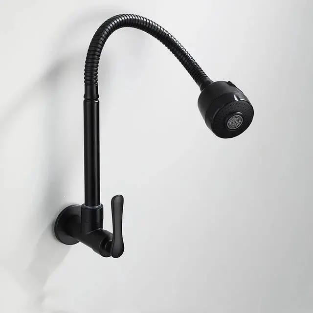 Kitchen Faucet Wall Mounted Single Handle 304 Stainless Steel kitchen Water Taps Cold Water Faucet Black